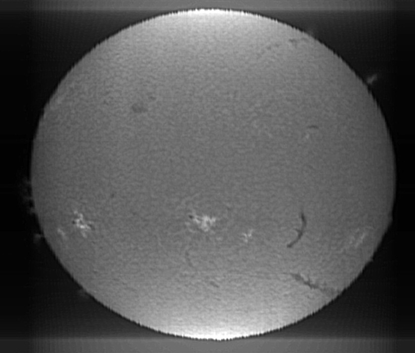 With a mosaic of 3 scans shot on october, 13 2007 at 9 am UT I got the following image (fig 7), that shows quite all the features at the moment visible on the solar disk in Ha light, as result by the comparison with the same day image from the Paris - Meudon Obs. spectroheliograph (Fig 8).