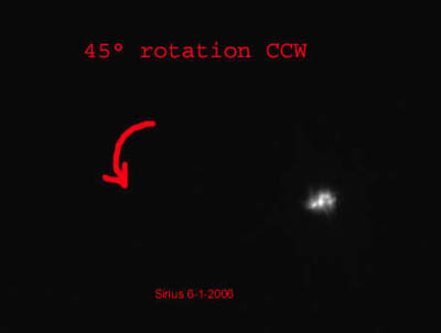 Una ulteriore conferma della posizione è data dall'immagine dello Hubble Space Telescope dell'ottobre 2003 del sistema di Sirio A e B.Opportunamente ruotata per ottenere lo stesso orientamento, nella predetta immagine, l'angolo dell'asse tra le due stelle coincide quasi completamente con quello della mia , come si può osservare nella elaborazione in Fig. 14: una piccola differenza angolare è dovuta al non perfetto parallelismo della camera con l'asse di declinazione della montatura.