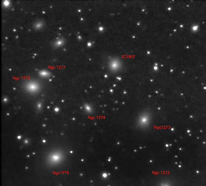 Abell 426 Perseus Galaxy cluster. Al centro NGC 1274- 250 Milioni di anni luce dalla terra. C11 @ f7 Meade focal reducer Mx 716 -Arcinazzo (Fr) Agosto 2006