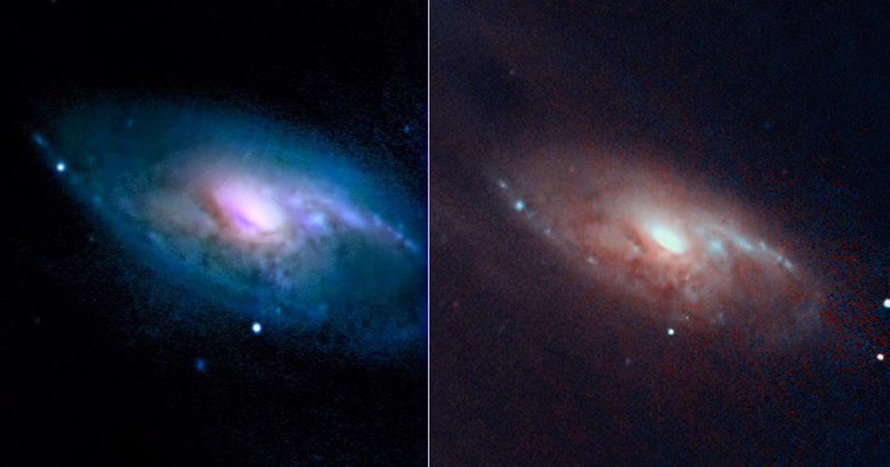 Core of M106 shot in UV +LRGB and in IR + LB light; note the differences in the nucleus