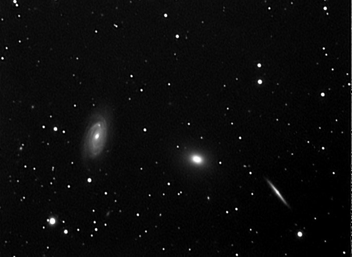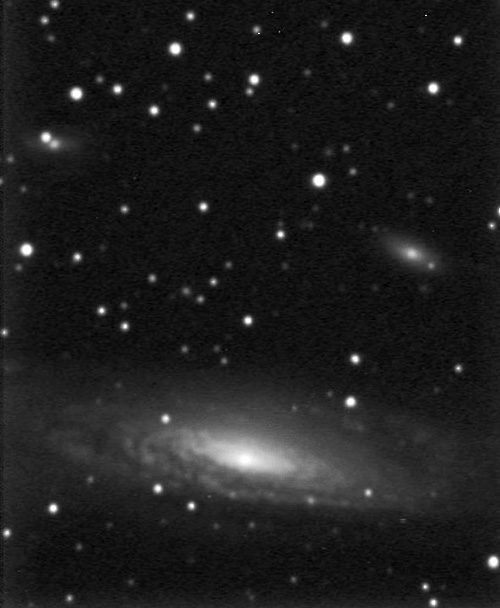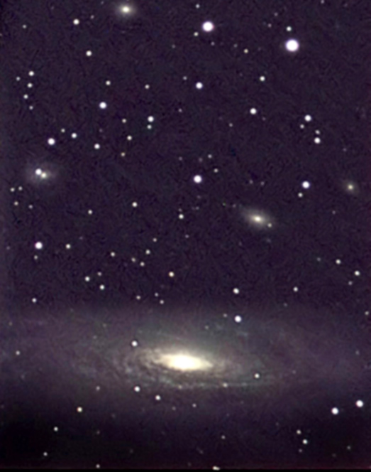 Gruppo di galassie NGC 3718 e NGC 3729 .NGC 3718 è considerata una galassia di Seyfert tipo 2, ed è ad una distanza di 52 milioni di a.l. dalla terra.La brillantezza del nucleo è parzialmente oscurata da una banda di polveri ben visibile, a forma di Z che attraversa tutta la galassia.Essa è probabilmente in iterazione gravitazionale con la vicina galassia NGC 3279, situata a 150.000 anni luce.In alto si nota il gruppo di galassie Hickson 56, situato ad oltre 400 milioni di a.l. Ripresa effettuata in agosto 2008 da Arcinazzo, con un rifrattore apo TMB 115 f 7 ed una camera Atik 16 HR in binning 2x2 - 15 immagini da 3 minuti, nessun filtro.
